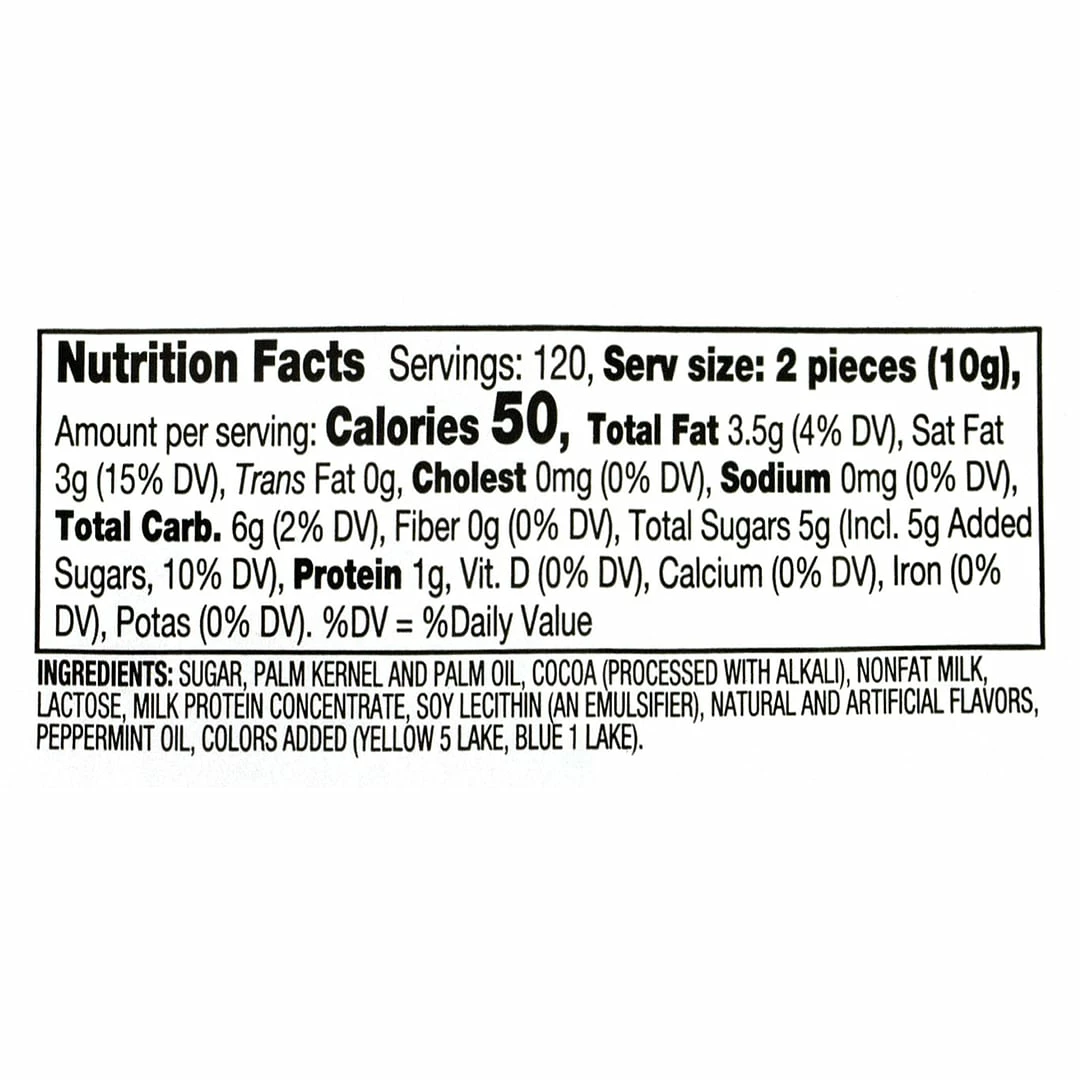 | Fat Free : No | Flavor : Mint & Chocolate | Gluten Free : Yes | Individually Wrapped : Individually Wrapped |