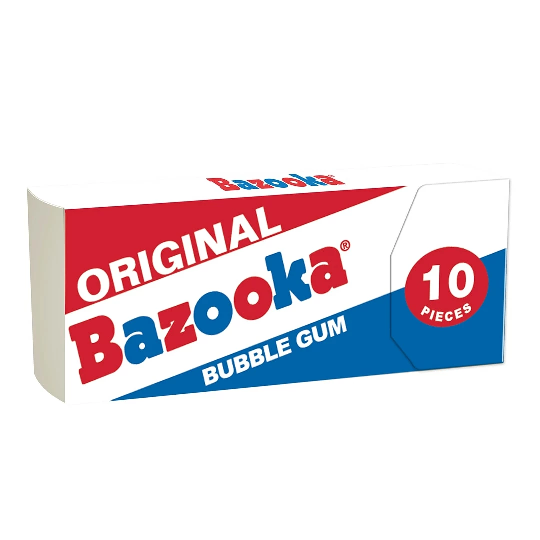 Unwrap the fun with Bazooka’s iconic pink chewy bubble gum in classic wallet packaging.