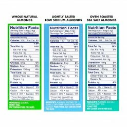 Whole Natural Almonds, Oven Roasted Sea Salt Almonds, and Lightly Salted Low Sodium Almonds
