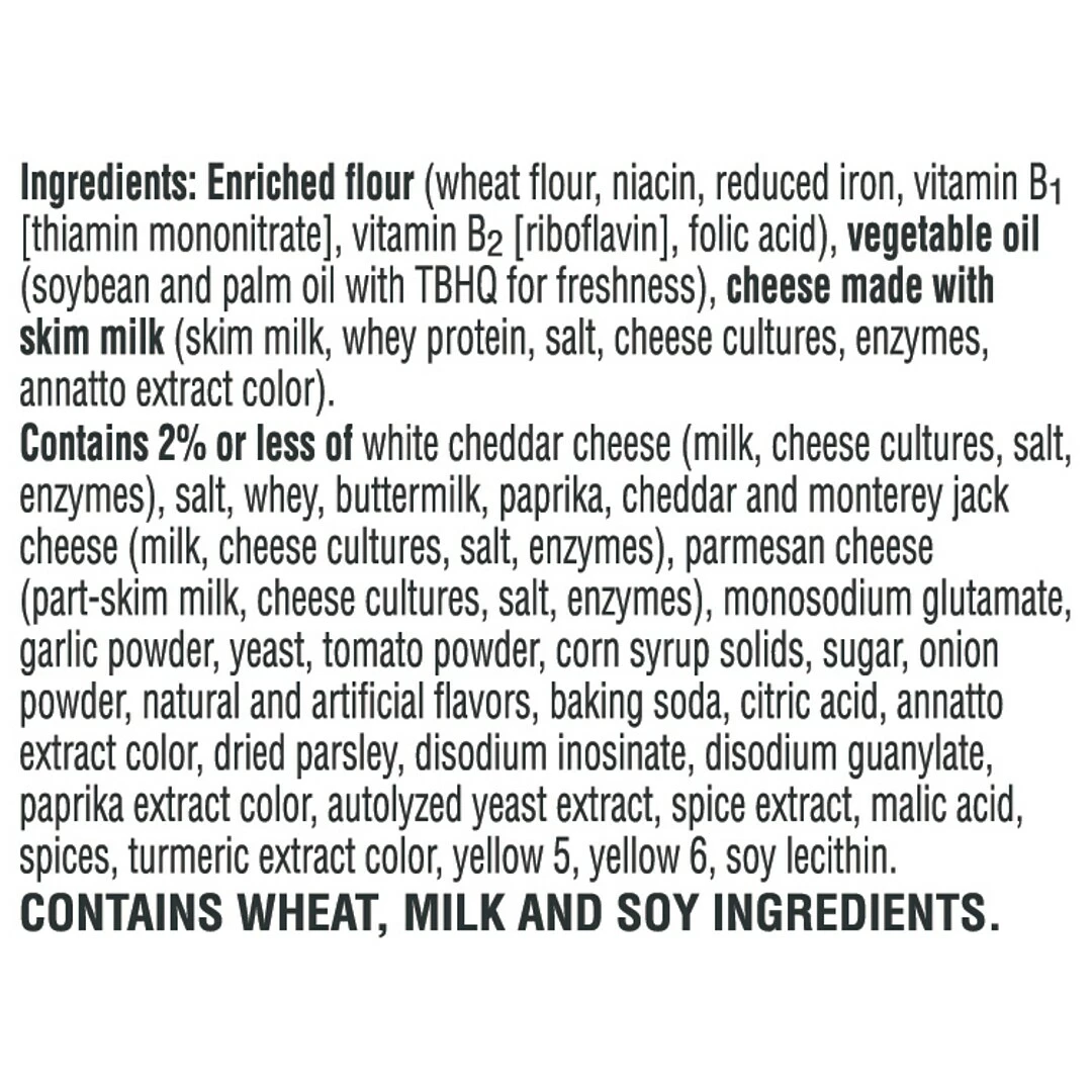 | Snack & Meal Type : Crackers | Snack Flavor : Sharp Cheddar & Parmesan | Sugar Free : No | |