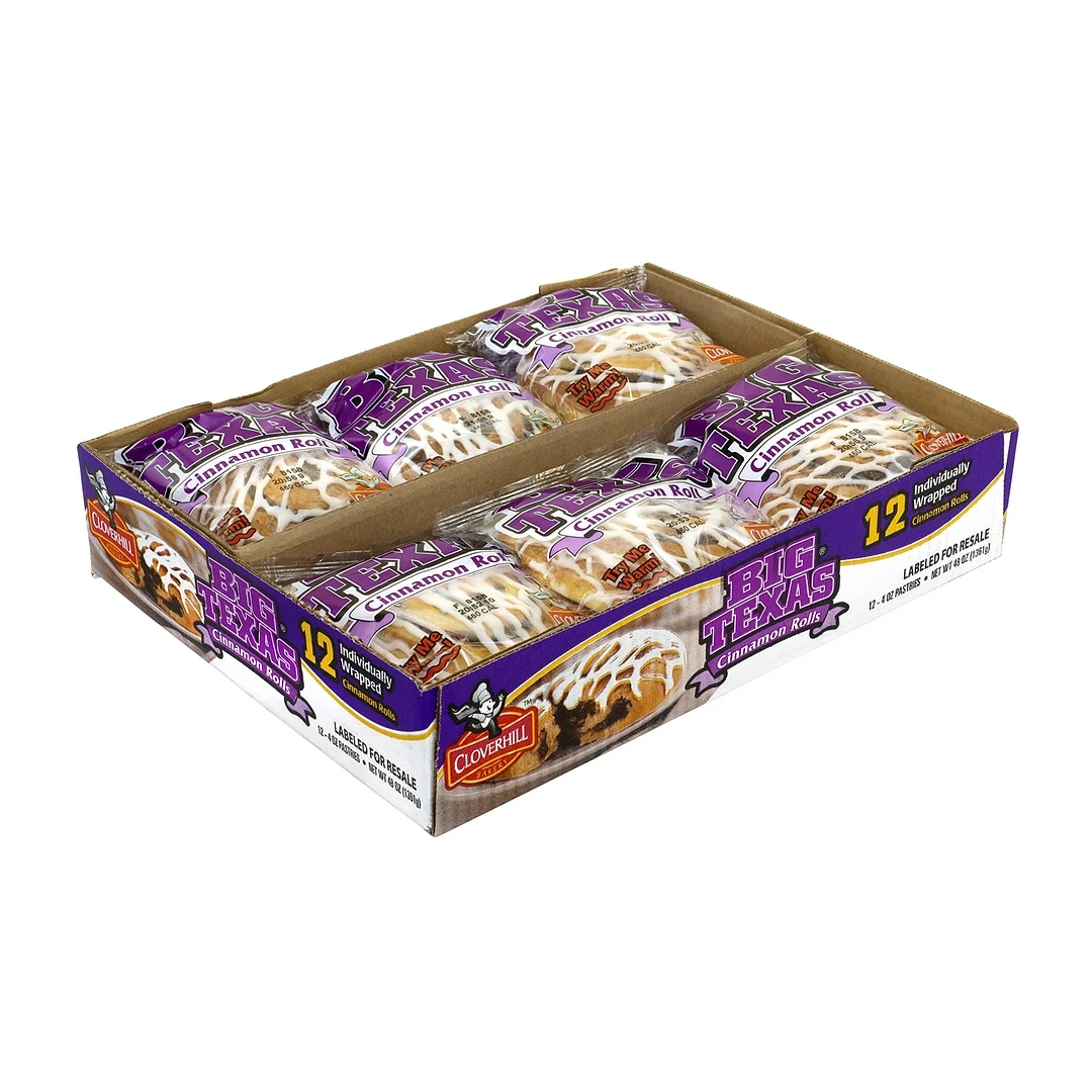 A 12-Pack of giant 4-Ounce Cloverhill Big Texas Cinnamon Rolls