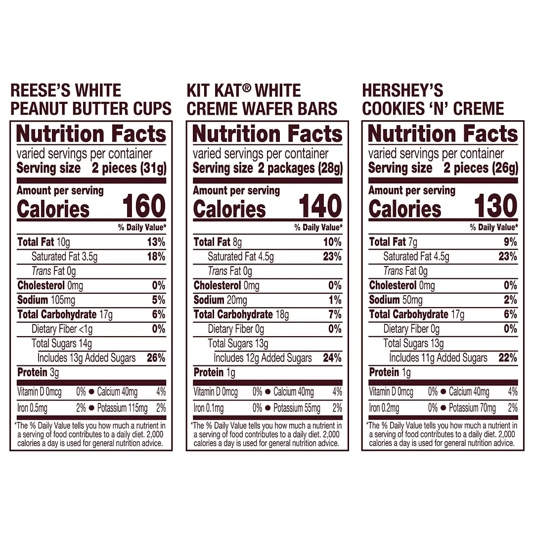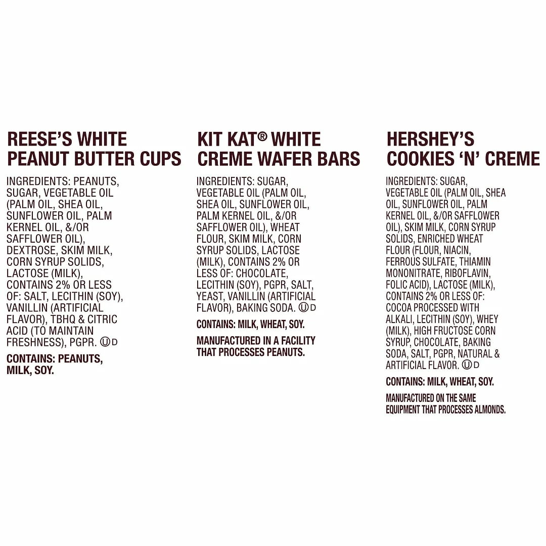 Assortment includes White REESE’S Peanut Butter Cups, HERSHEY’S Cookies ‘n’ Crème, and KIT KAT White Wafer bars