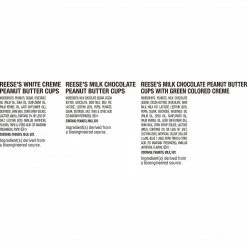 Includes REESE’S milk chocolate peanut butter cups, white creme peanut butter cups and Franken-Cup milk chocolate peanut butter with green colored creme cups candy