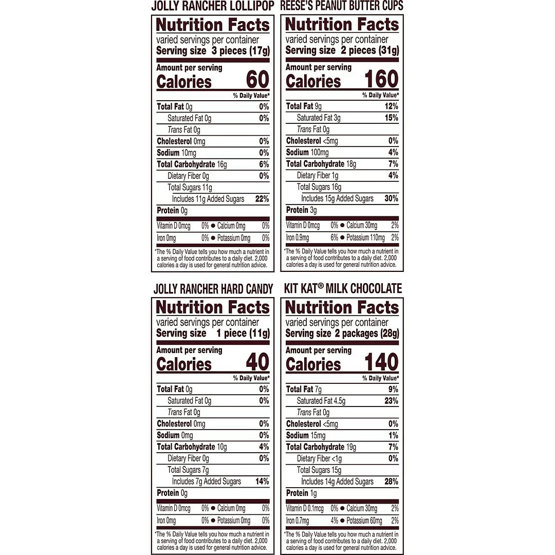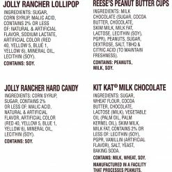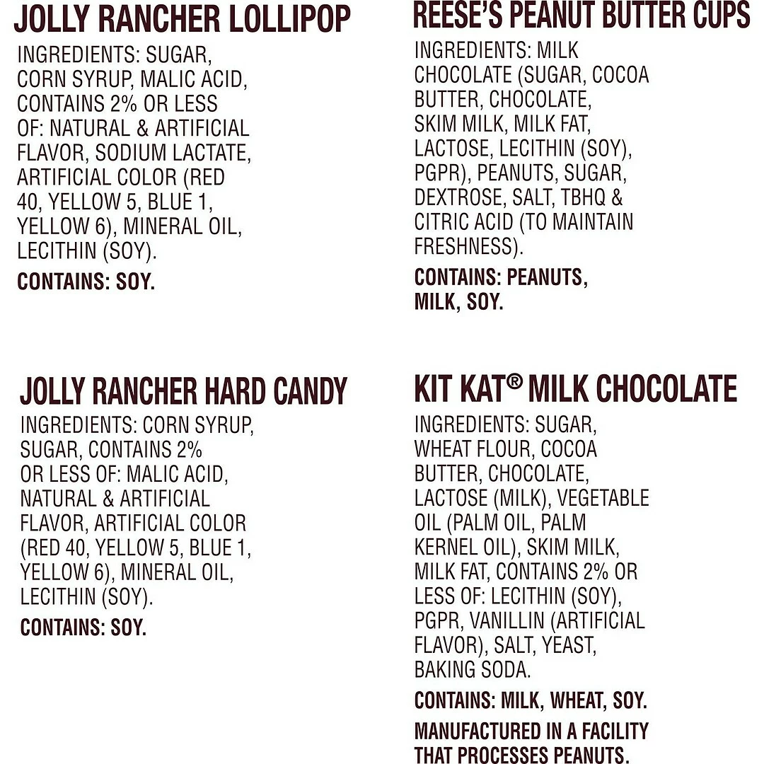 Includes REESE’S milk chocolate peanut butter cups, KIT KAT® milk chocolate wafer candy bars and JOLLY RANCHER fruit-flavored lollipops and hard candy