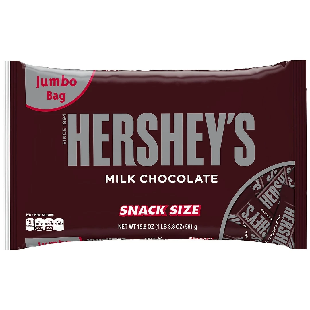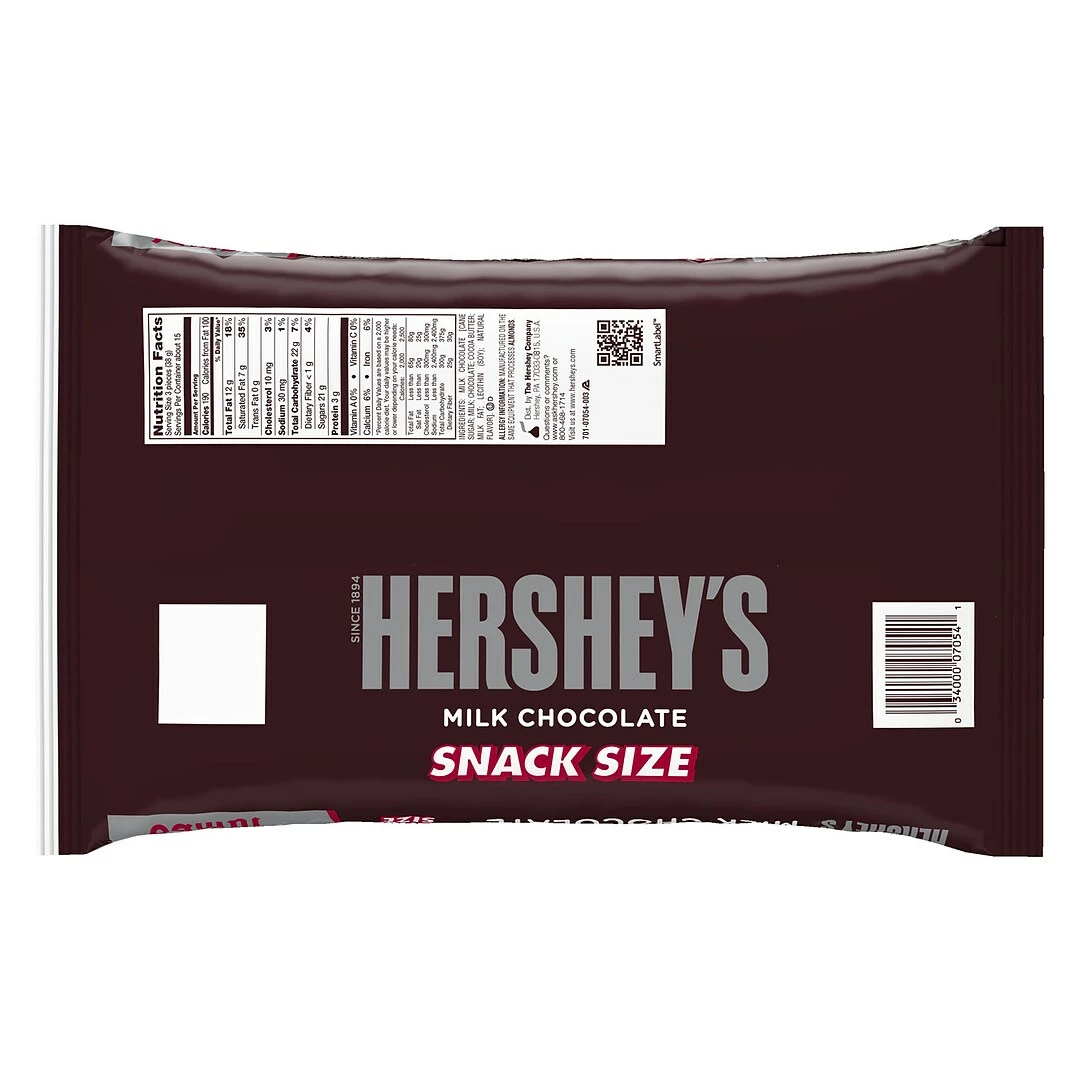 Includes 1 bag of Hershey’s Milk Chocolate Snack Size Bars (19.8-Ounce bag)