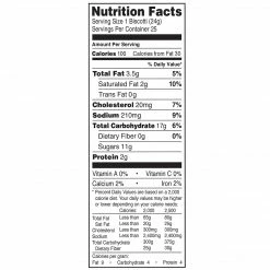 Each biscotti has UPC and nutrition facts and is individually wrapped for freshness and convenience. Ideal for catering, vending machines, and on-the-go snacking