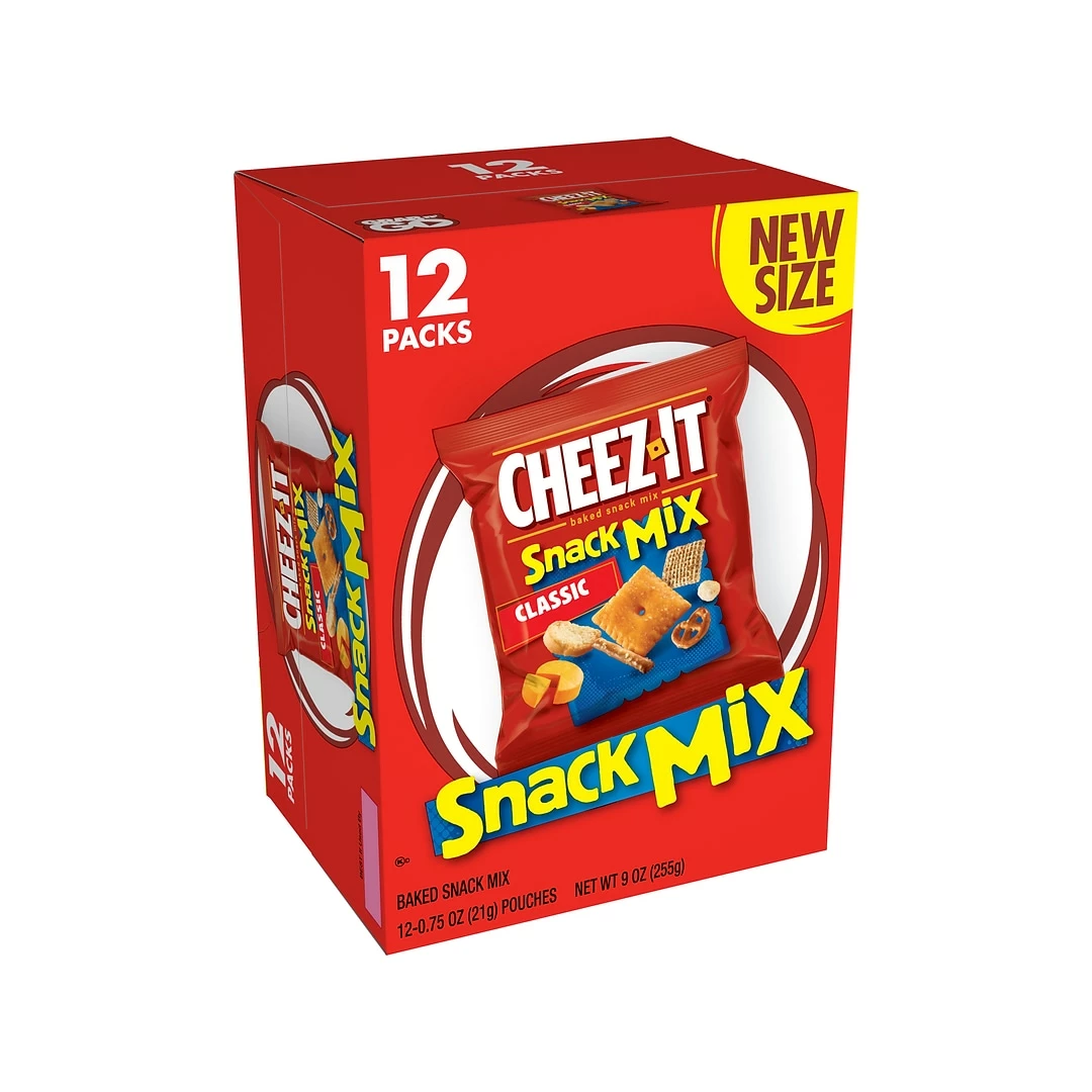 Satisfy your snack time cravings with a delicious handful of Cheez-It Classic snack mix. Featuring a tasty combination of crackers, made with 100% real cheese, tasty pretzels, mini toasted bread slices, savory wheat squares, and cheese-flavored rice balls, this snack mix is baked to perfection. Enjoy this mix by the handful as an after-school snack or party food. Serve these baked snacks on birthdays, game days, or any time you’re craving cheesy satisfaction.