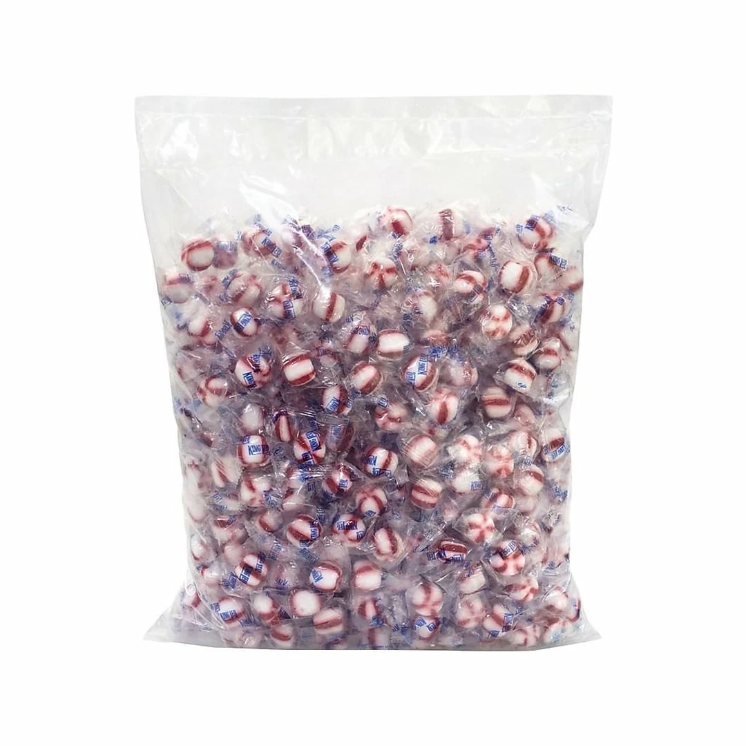Enjoy these soft peppermint puffs made from pure cane sugar and peppermint oil. Peppermint puffs are individually packaged in a clear wrap for easy eating on the go. With approximately 400 King Leo soft peppermint puffs per 5-pound bag there are plenty of hard candies for filling office candy dishes or using as after-dinner mints in restaurants.