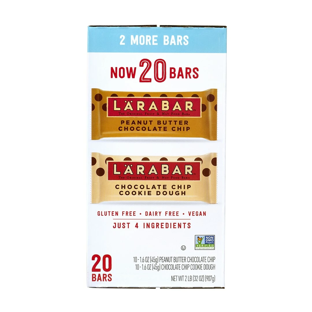 Stock home pantries, public kitchens, cafeterias, and vending machines with this selection of delicious bars perfectly sized for a quick snack. This Larabar variety pack includes 20 individually wrapped bars in two delicious flavors excellent for sharing at meetings or taking on the go.
