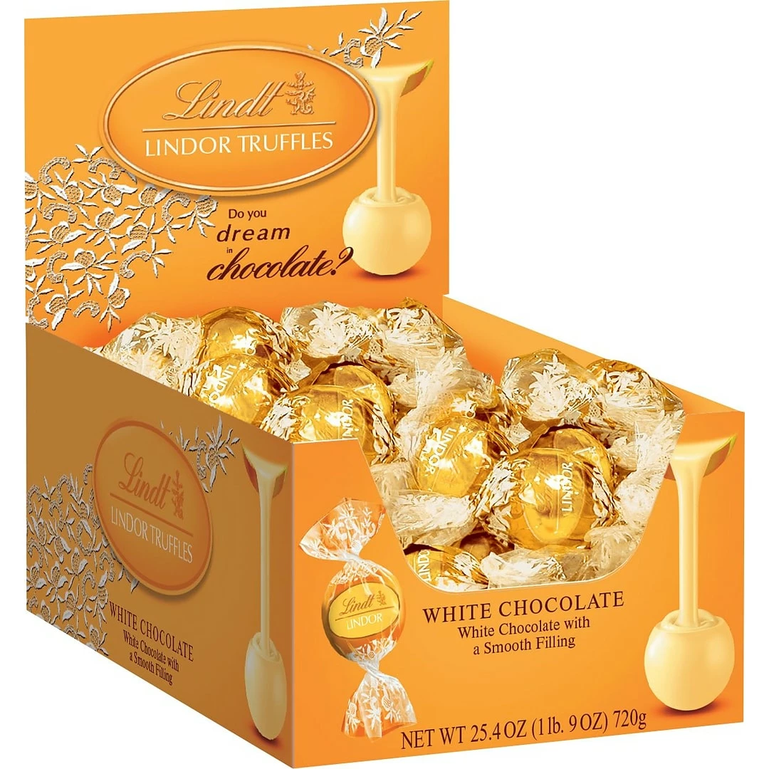 Lindt LINDOR White chocolate truffles are delicious and richly flavored. Chocolate truffles are suitable for parties, gifting and corporate events, sold as 60 per box.