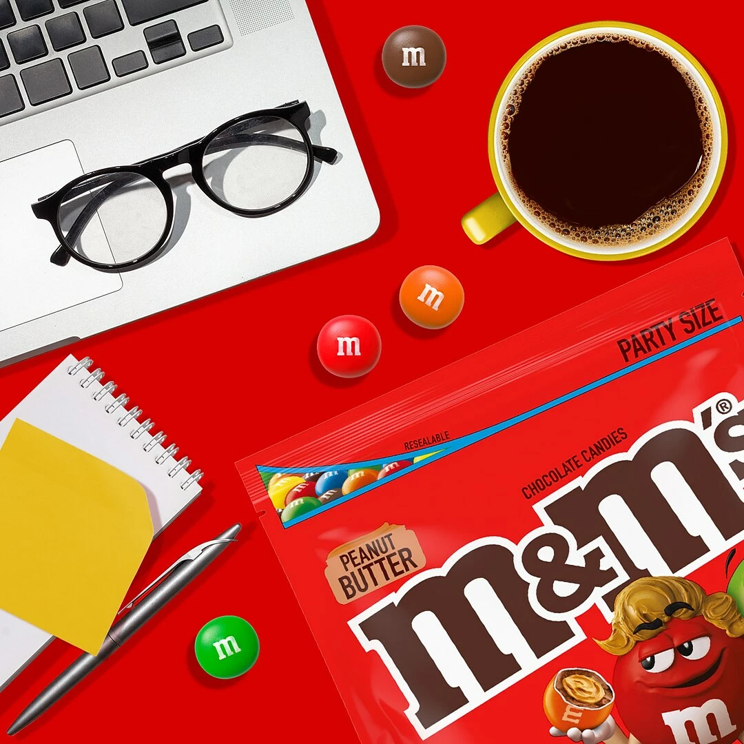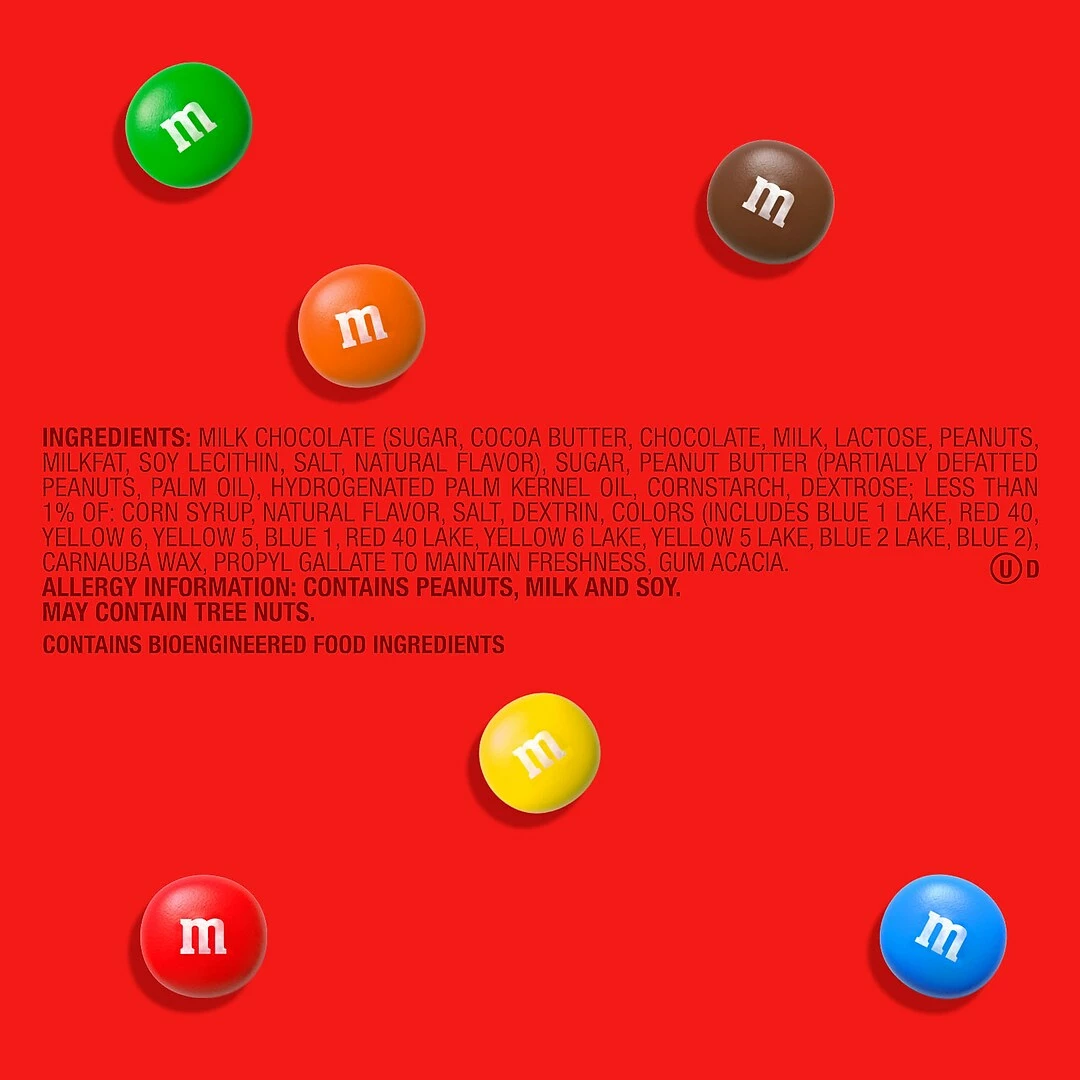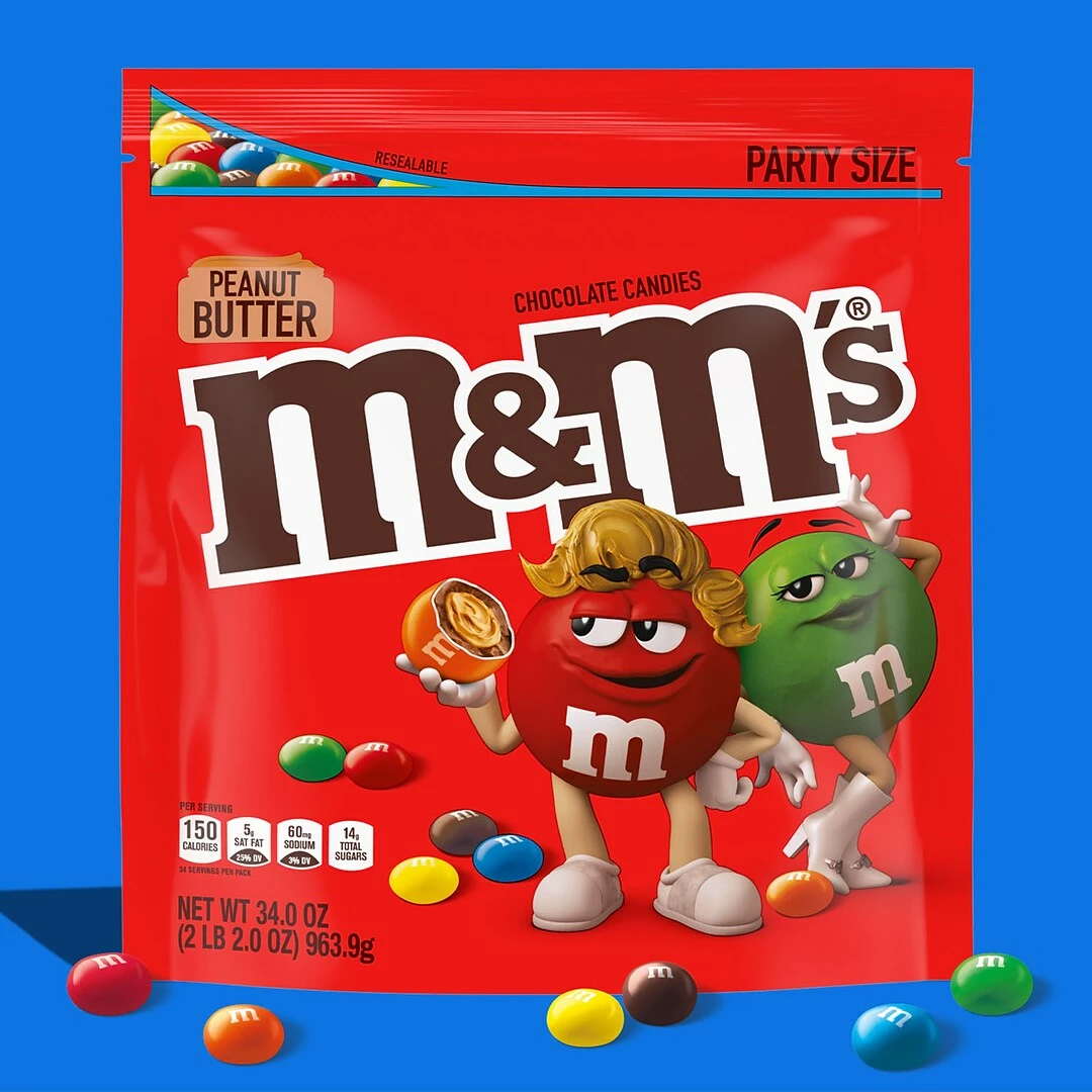 Contains one (1) 34-ounce party size resealable candy bag of M&M’S Peanut Butter Chocolate Candy Bulk Pack