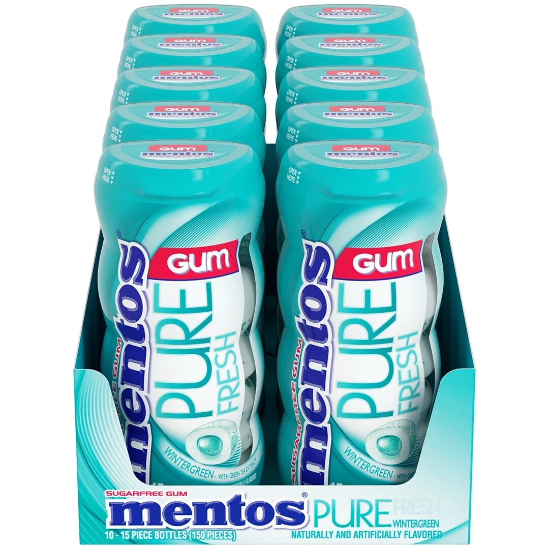 Sugar-free for a guilt-free flavor sensation! Chewing gum with xylitol may reduce the risk of tooth decay, and Mentos Pure Fresh chewing gum contains more xylitol than the leading sugar-free chewing gum brand. The Mentos pocket bottle is the perfect size for on the go. Pack it in your purse, pocket or any place you need a freshness fix! With 15 pieces per bottle, make fresh connections by sharing or keep all the freshness to yourself.