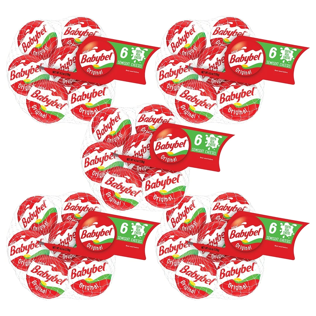 5 bags of Mini Babybel Original Cheese with 6 pieces in each bag for a total of 30 mini cheeses.