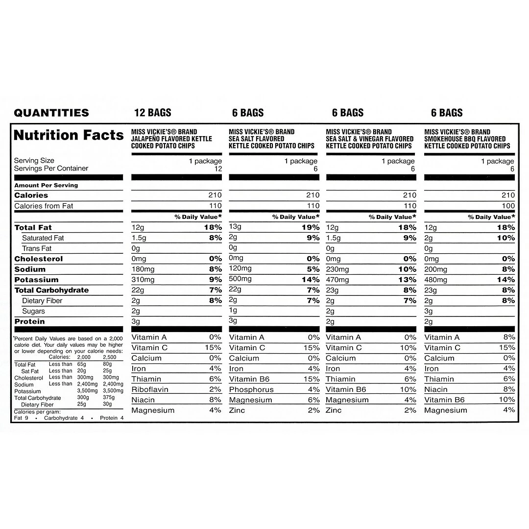 12 Jalapeno, 6 Sea Salt and Vinegar, 6 Smokehouse BBQ, 6 Original Recipe