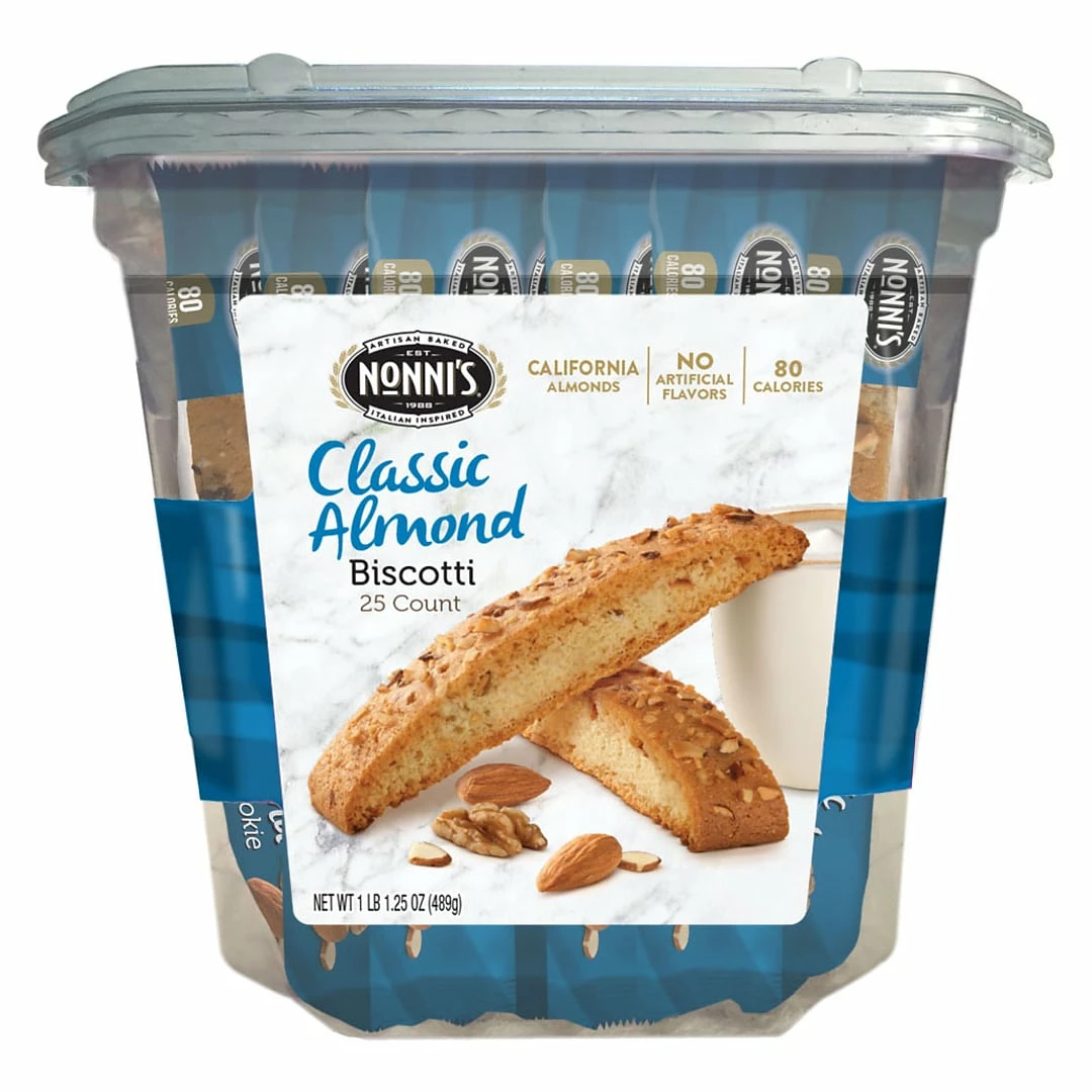 Made with wheat flour, butter, and California almonds90 calories per biscottiKosher