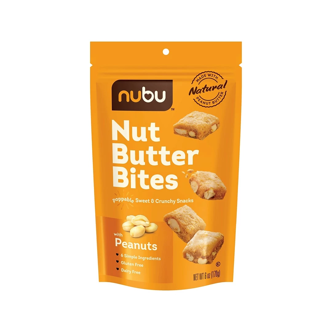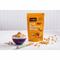 Nubu nut butter bites with peanuts are for real peanut lovers who can’t get enough. A rich, 100% natural peanut butter base with added peanuts creates a delectable bite that will keep you coming back for more. Enjoy the six simple ingredients (without preservatives, gluten, or dairy), and discover the answer to peanutty snack cravings.