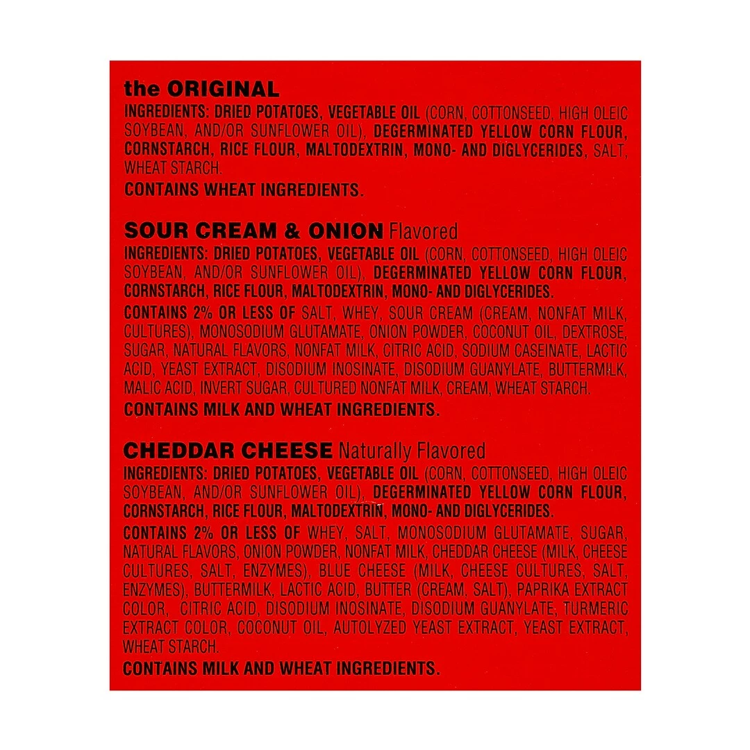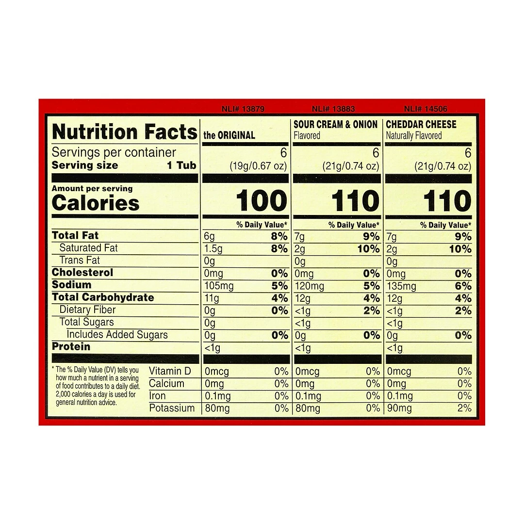 Carton contains: 12 cheddar cheese flavored containers, 12 sour cream and onion flavored containers, and 12 containers with the original flavor (36 containers total)