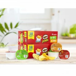 Fill student lunch bags or office break room snack drawers with these chip packs. The choice between sour cream and onion, original, and cheese flavors meets multiple taste preferences, and 0.67-ounce and 0.74-ounce cups are just enough crunch to appease afternoon hunger. This box of Pringles Snack Stack variety chips includes 2 -18 packs for a total 36 cups for several weeks’ worth of munching.