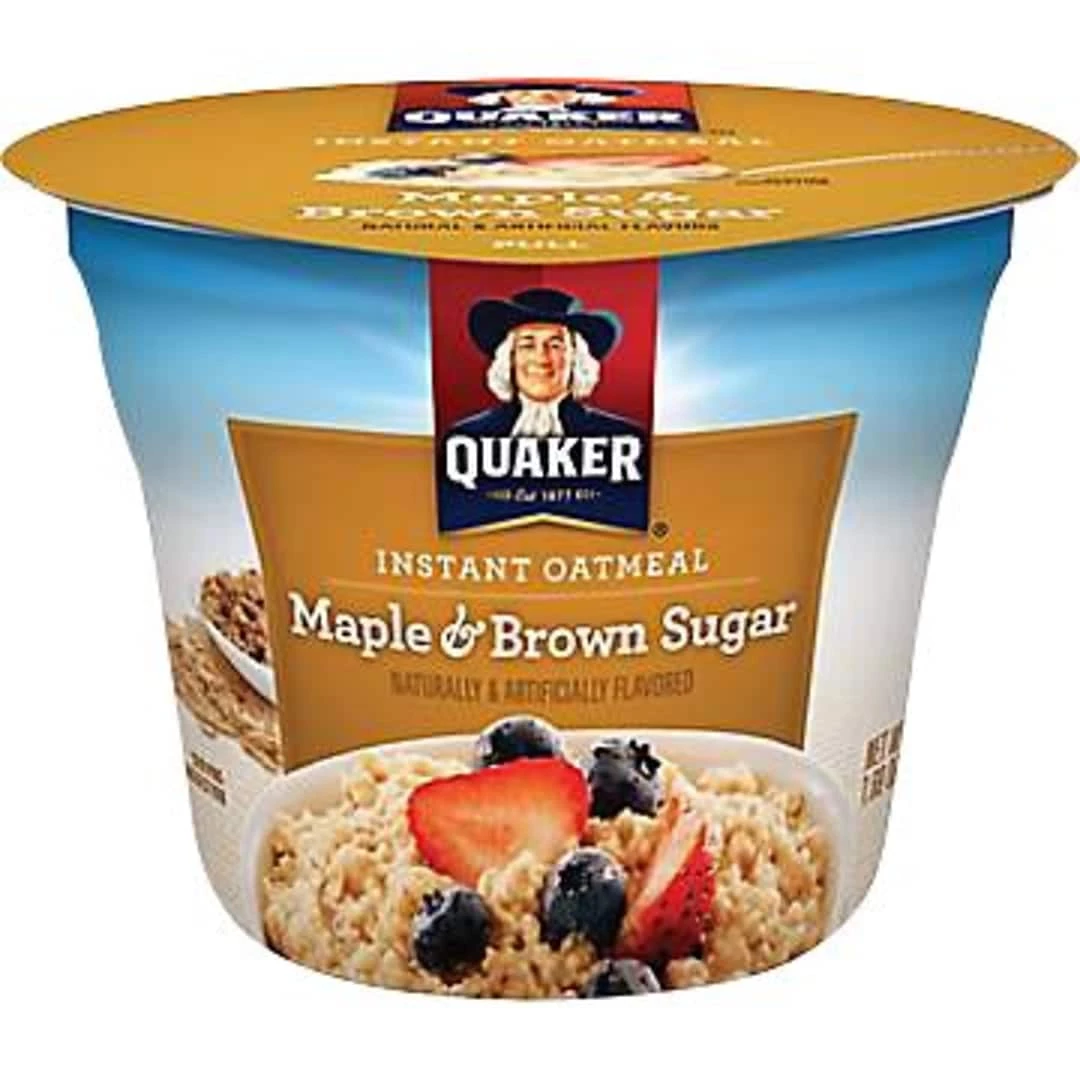 Make breakfast a quick affair with these Quaker oatmeal maple-brown-sugar cups.