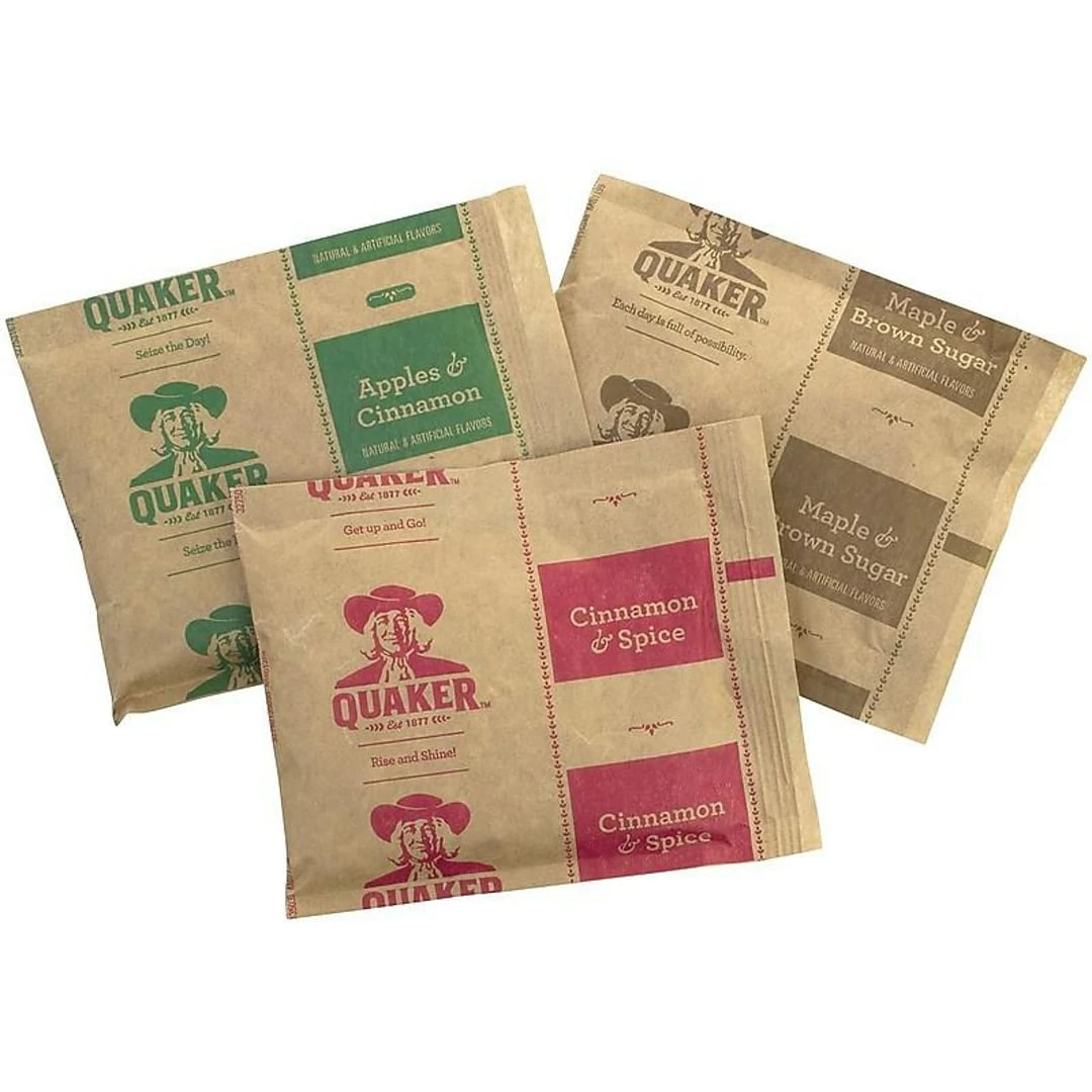 Enjoy a warm and comforting morning meal with these microwaveable oatmeal pouches. Each 52-count box offers plenty of choices, thanks to a combination of maple and brown sugar, apples and cinnamon, or cinnamon and spice oatmeal. Ideal for busy mornings, Quaker oatmeal packets are ready in just 90 seconds.