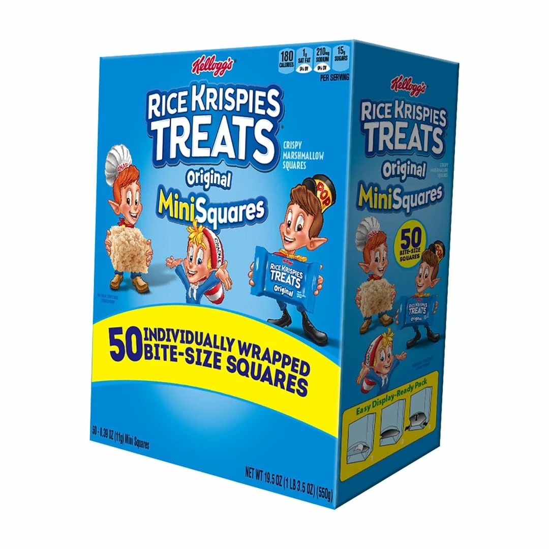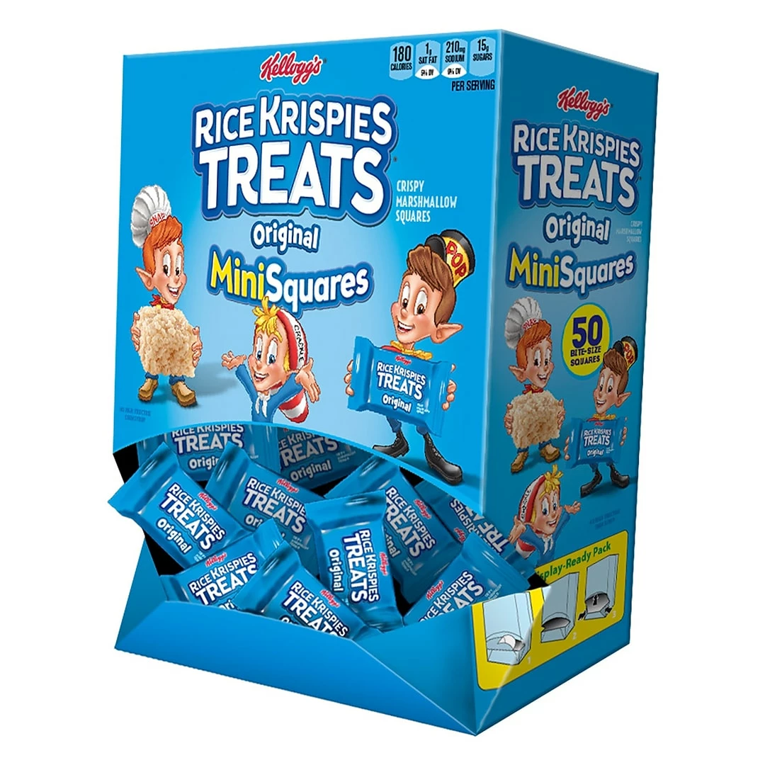 Stock the home or office with the delicious taste of crispy rice snacks. These sweets are a convenient size, allowing you to satisfy a sweet tooth with the right amount of sugar. With only 45 calories per serving, each of these Rice Krispies Treats can serve as a smart alternative to candy bars or other calorie-dense options.