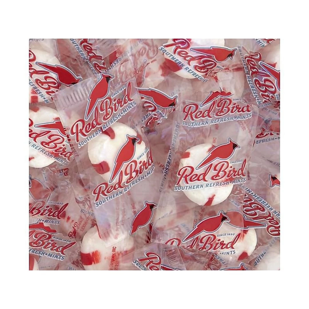 Offer a breath-freshening palate cleanser with these soft, melt-in-your-mouth peppermint puffs. Each confection is individually wrapped for safety. These all-natural Red Bird mints come in a 20-pound case for easy stocking of desk candy dishes and reception station candy jars.