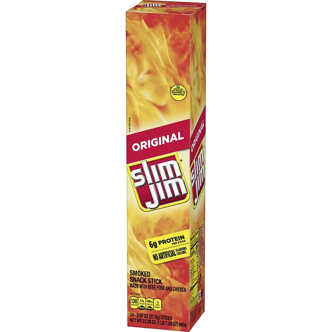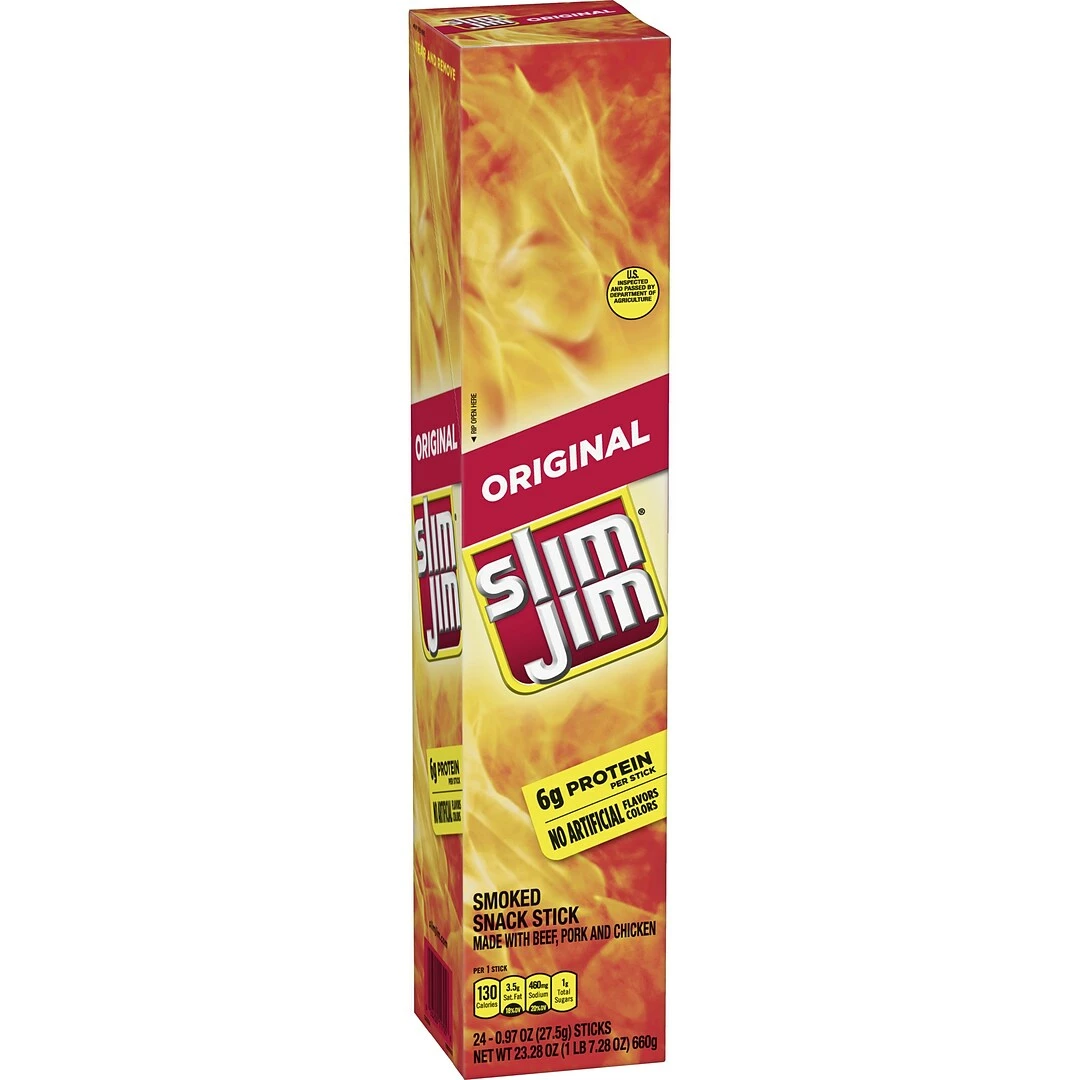 24 0.97-Ounce individually wrapped Slim Jim Snack Sticks.