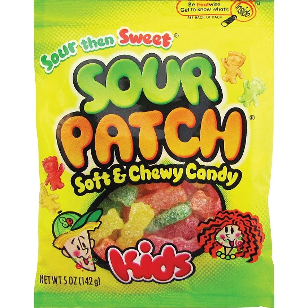 Sour Patch Kids candy combines the grab-and-go convenience of small-serving bags to go along with the sour flavor of the candy. These candies expand your selections for customers at convenience stores, hospitals or self-serving establishments where snacking is a regular occurrence.
