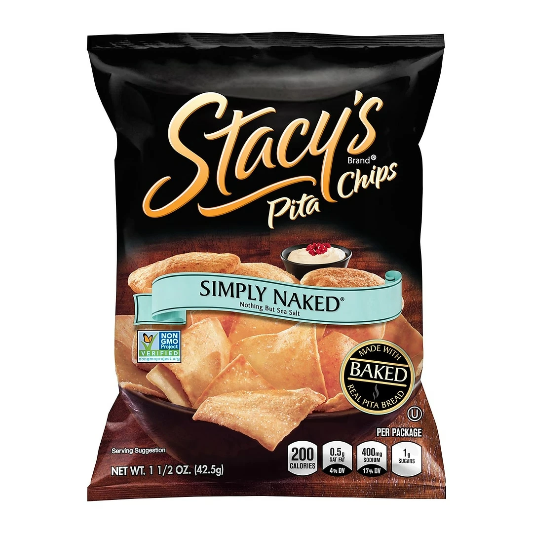 24 1.5-Ounce bags of Stacy’s Pita Chips Simply Naked Pita Chips, baked with Real Pita Bread!