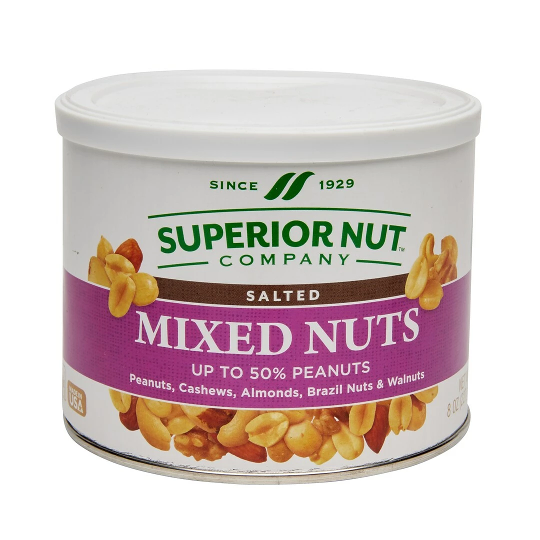 12 8oz Cans of delicious Superior Nut Mixed Nuts