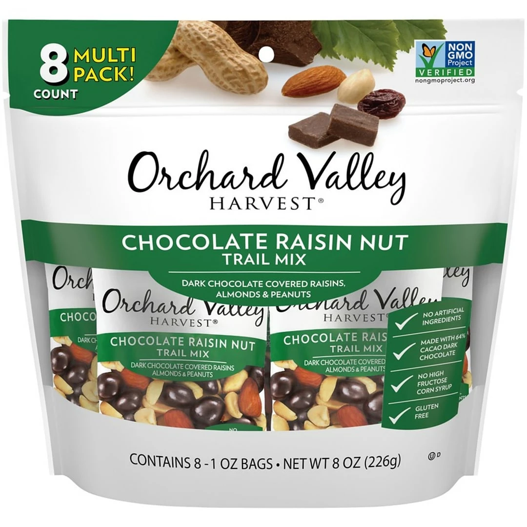 A delicious blend of raisins covered with 64% cacao dark chocolate, almonds and peanuts. Orchard Valley Harvest is dedicated to finding pure and simple nuts and dried sweetened fruit that support your active lifestyle.