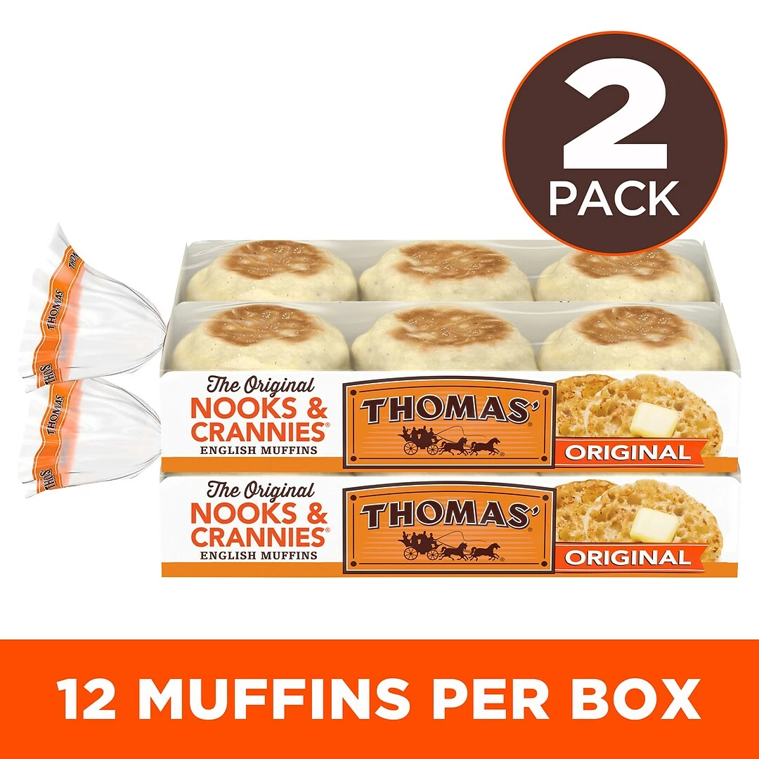 2-12-Pack of Thomas’ English Muffins with the Original Nooks & Crannies