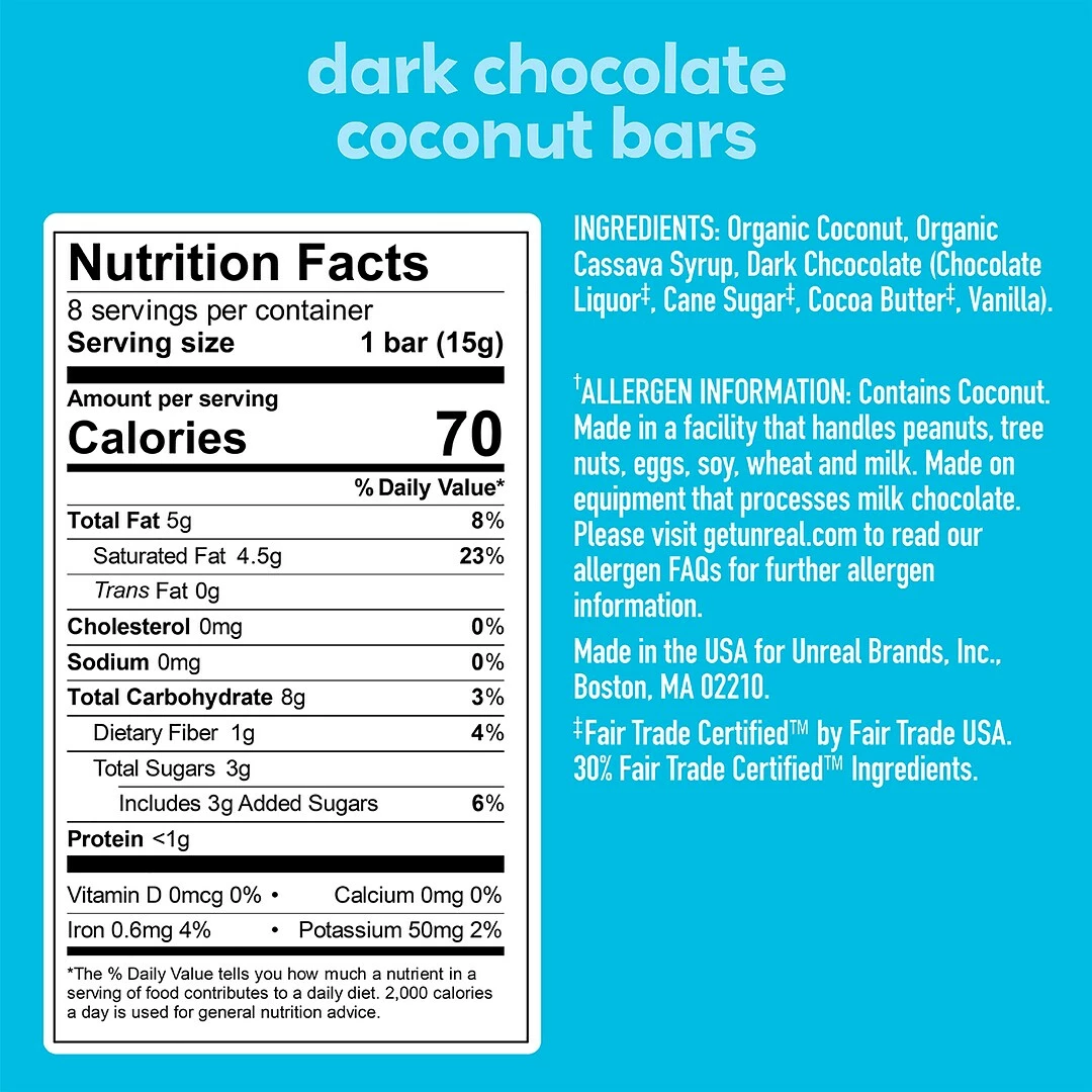 INDIVIDUALLY WRAPPED: Each bag contains 8 individually wrapped .53oz dark chocolate coconut bars and are perfect for lunches, snacking, on the go, or to add to your baked goods!